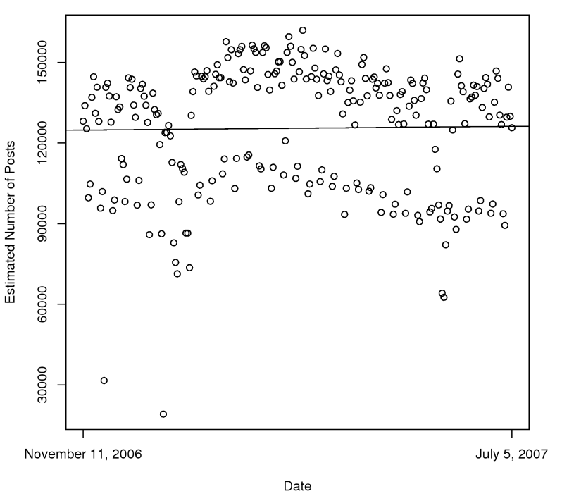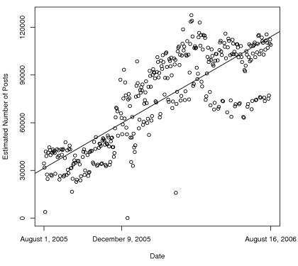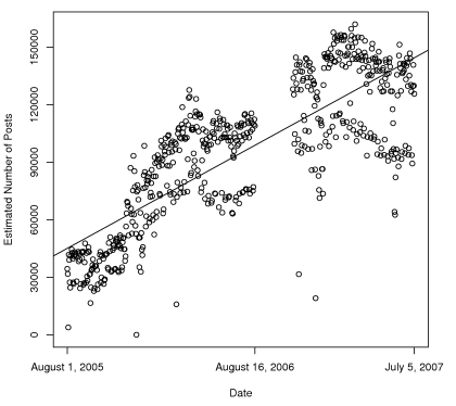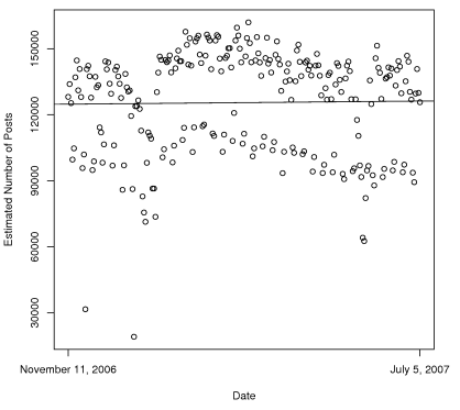 Our broad conclusion is that the number of posts per day is relatively small, perhaps one tenth of the blogosophere.